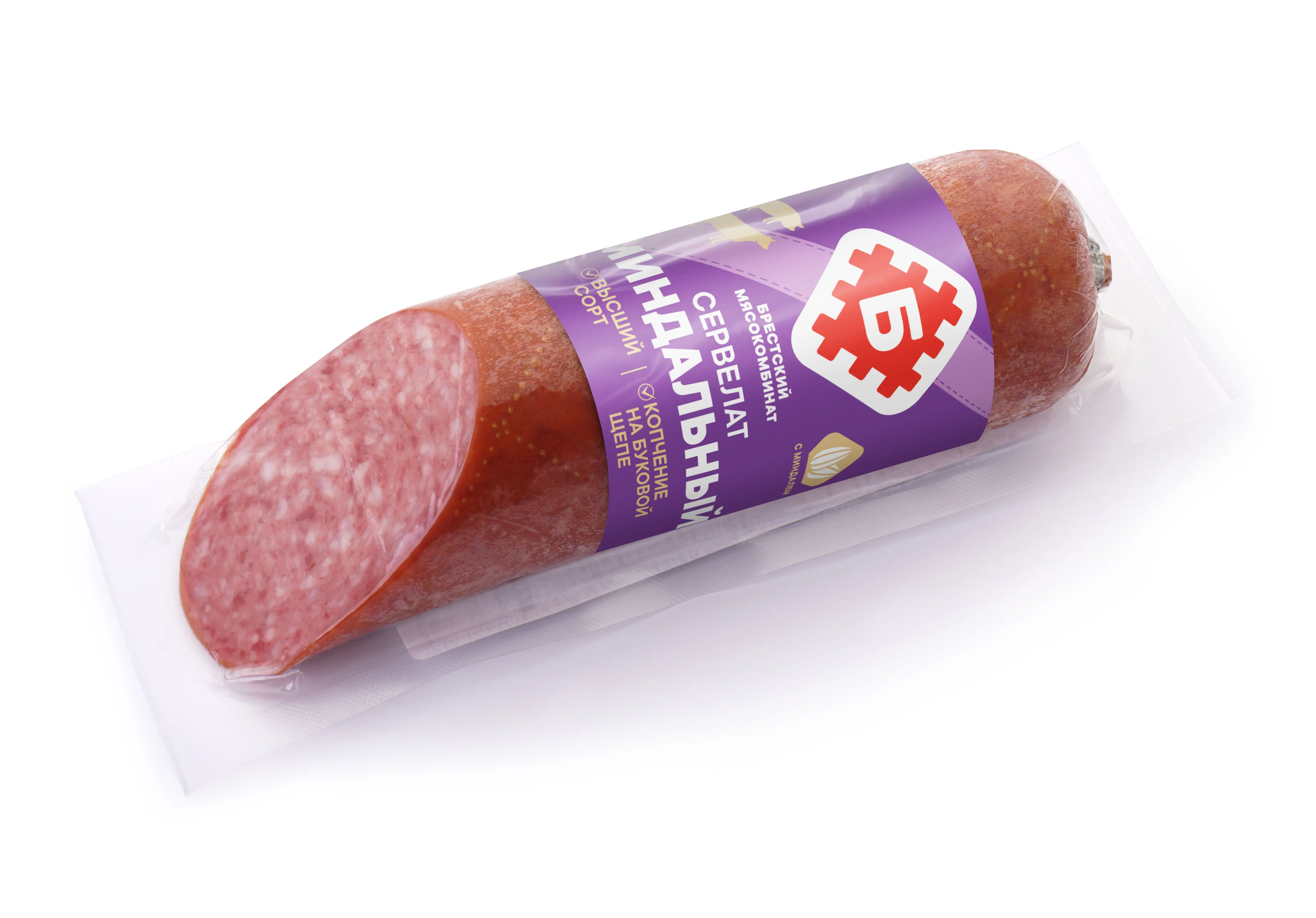 Купить Сервелат "Миндальный" 220 г можно с доставкой по Астрахани. Мы гарантируем отличное качество и свежесть наших белорусских колбас!