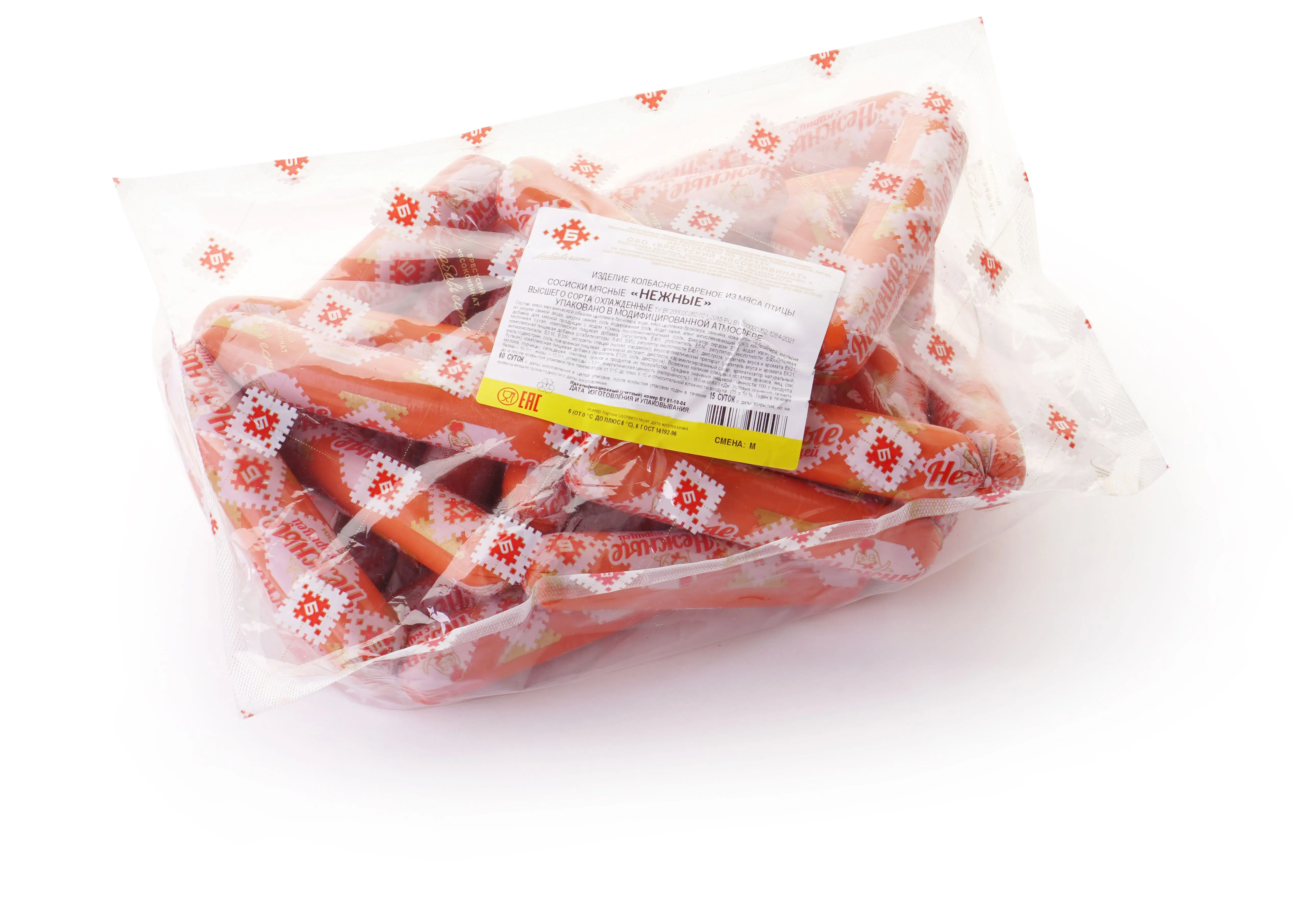 Сосиски «Нежные» - отличный выбор для тех, кто ценит вкусные и качественные мясные изделия. Наши белорусские сосиски изготовлены из отборного мяса по традиционным рецептам, что гарантирует не только превосходный вкус, но и высокое качество.